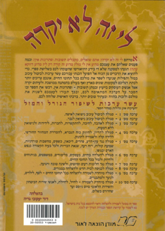 ספרו הראשון למה זה קורה לי? יצא לאור בהוצאת ”ידיעות אחרונות“ והפך לרב מכר, שזיכה את הרב בשנת התשס“ד (2003)בספר זהב ובספר פלטינה, שהוענקו לו על ידי התאחדות הוצאת הספרים בישראל.